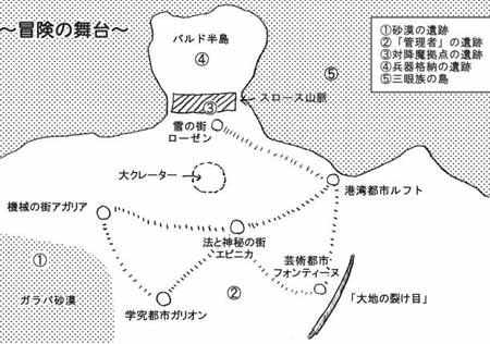 人々はロステクと思われる謎の石柱の周りでしか安定した生活を送れないため今回舞台となる地域には6つの街しか存在しない。街の外には奇怪な生物が跋扈する荒野が広がっている。このため、街から街へ安全に移動するには確立されたルートを移動しなければならない。